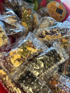• Gạo lứt rang giòn: giàu chất xơ, vitamin B, giúp hỗ trợ tiêu hóa và kiểm soát đường huyết